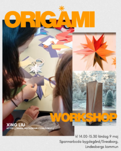 lördag 9 maj kl 14:00-15:30 upptäck origamins magi tillsammans med konstnären xing liu.